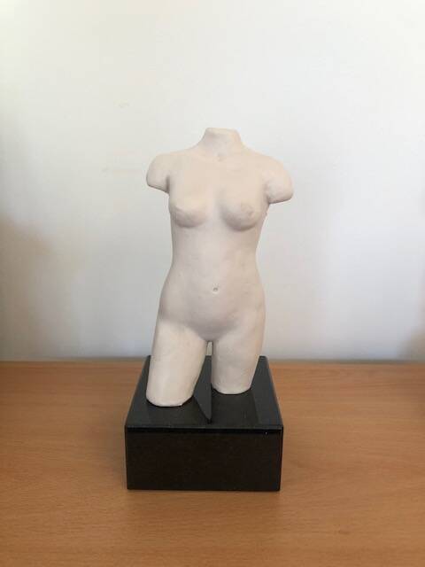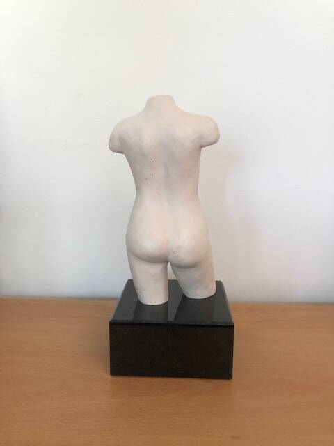 Dit beeldje is te koop in hars. Hoogte torso: 14 cm, hoogte sokkel van graniet: 4 cm
